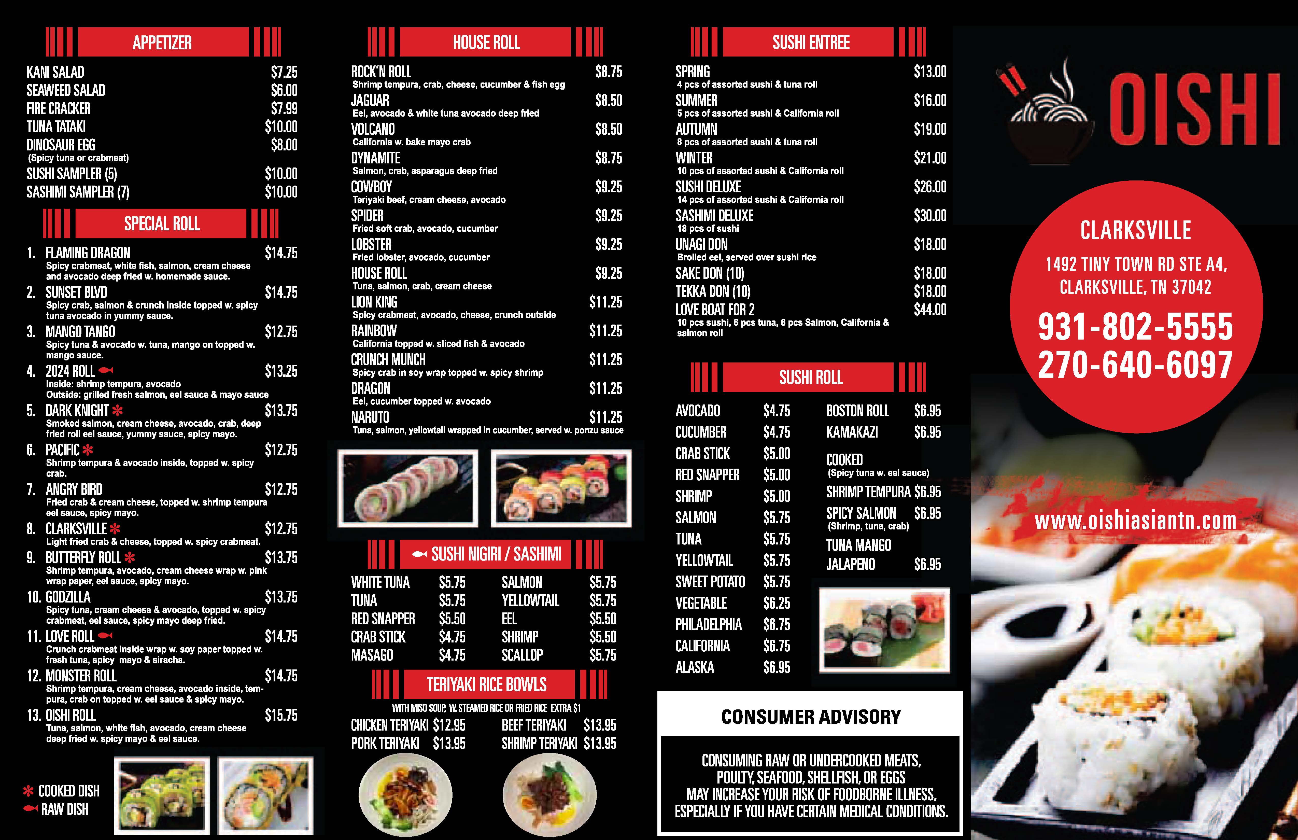 Oishi Menu